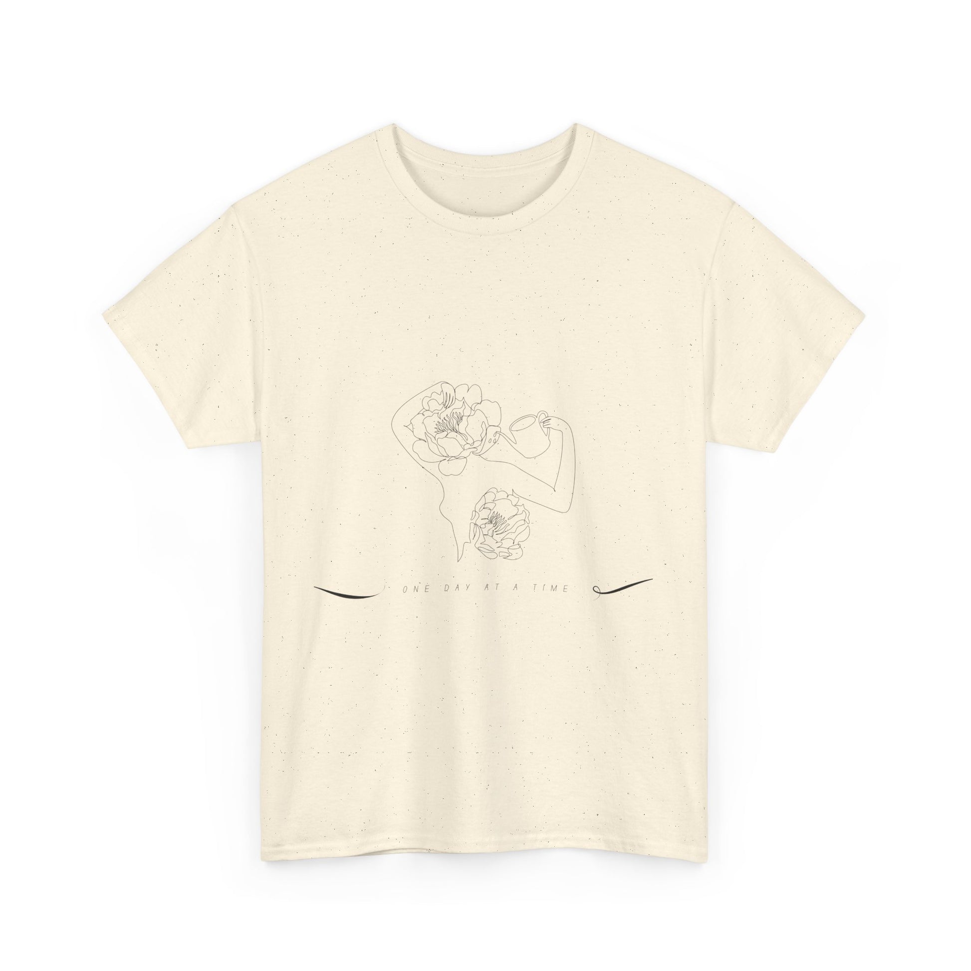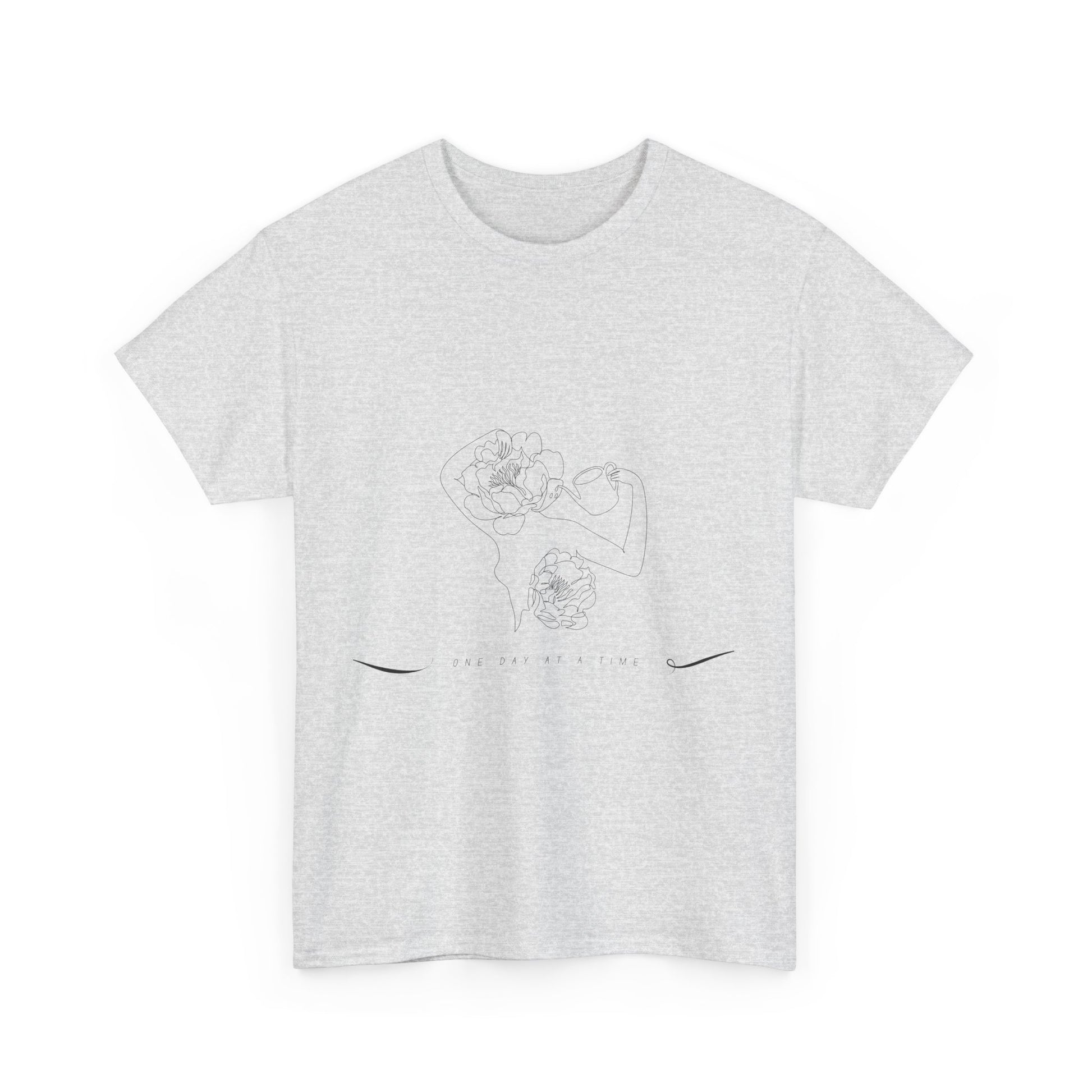 This T-shirt features the uplifting phrase "One Day at a Time", serving as a gentle reminder to embrace the present and take life step by step. Designed with a minimalist yet stylish font, the message stands out boldly against the soft fabric, making it perfect for everyday wear. Whether you're on a personal growth journey, overcoming challenges, or simply looking for a motivational boost, this tee is a comfortable and meaningful choice. Pair it with jeans for a casual look or layer it under a jacket for effortless inspiration wherever you go.